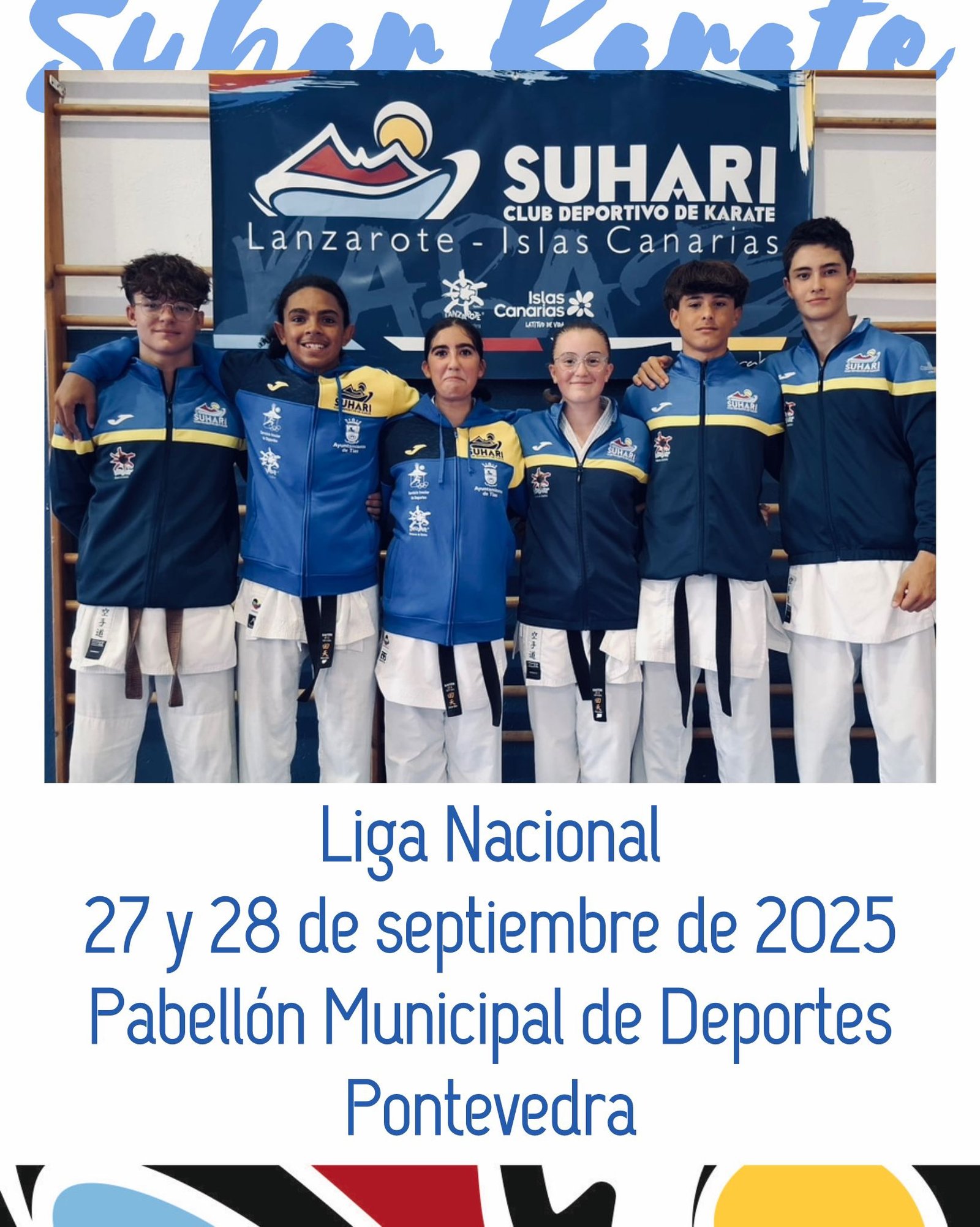 El Club Suhari de Tías inicia este fin de semana la temporada 2025/26 de karate con su participación en la cuarta jornada de la Liga Nacional, que se disputará en el Pabellón Municipal de los Deportes de Pontevedra. El equipo, dirigido por Marco Guerrero, acudirá a la cita con seis de sus alumnos, que competirán en la categoría cadete.